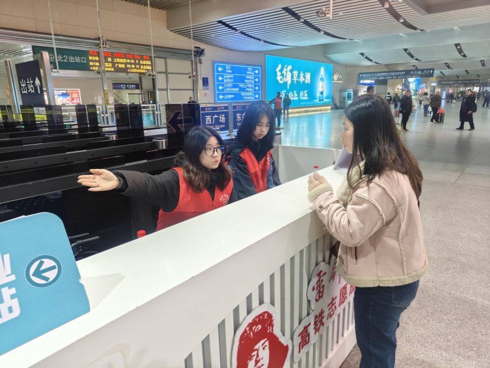 3月15日,服务的接力棒传至长沙火车南站。面对更大的客流量与更复杂的动线,志愿者们与车站工作人员紧密协同,在地铁换乘层、进出站口等客流集散区域精准布点。他们或俯身帮助旅客搬运沉重行李,或清晰指引换乘路线,一句句“您好,请问需要帮助吗?”的温暖问候,有效缓解了车站的服务压力,提升了旅客的出行效率与体验。在川流不息的人群中,志愿者们用坚守与汗水,诠释了实干担当的青春本色。