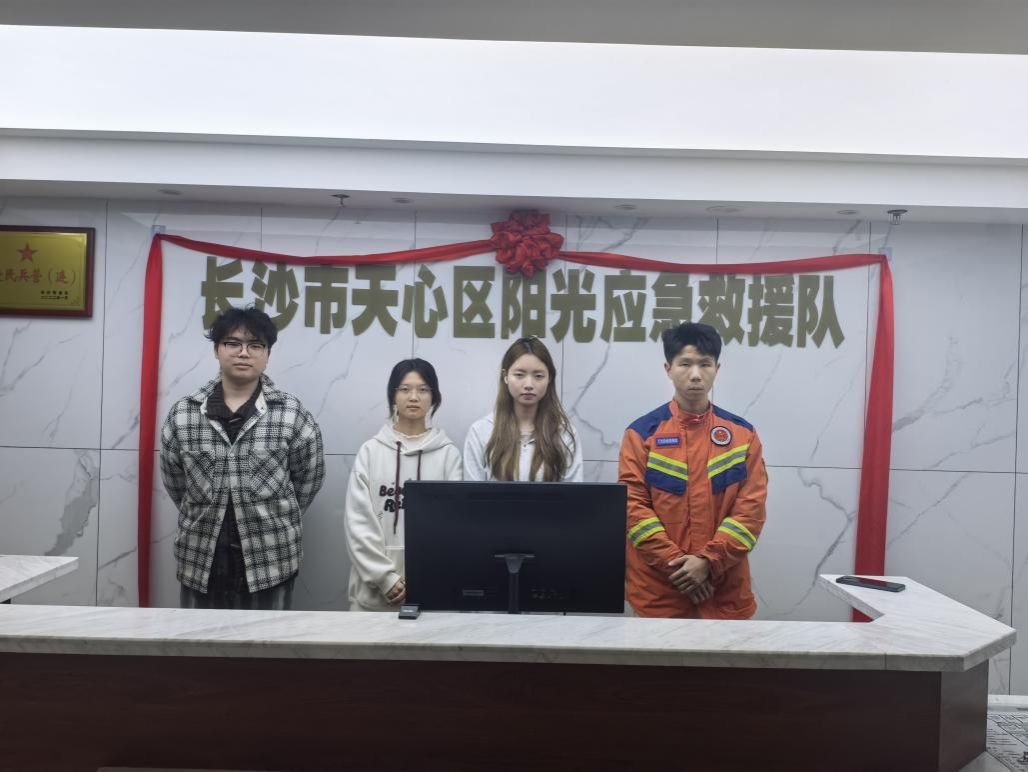 同一日,学院另一支志愿服务队伍走出校门,前往长沙市天心区蓝天应急救援队与天心区政府,开展了一场沉浸式的学习与实践。