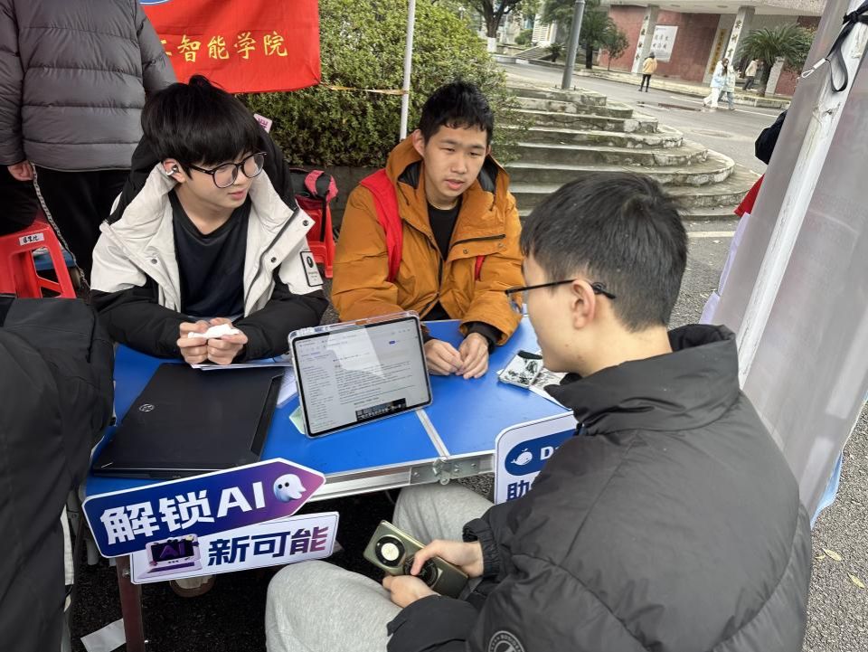 一旁的AI科普互动区同样气氛热烈。志愿者们通过现场演示、趣味讲解、发放手册等方式,向师生们普及人工智能基础应用、日常网络安全防护知识以及电子设备维护技巧,将前沿科技以生动有趣的方式带到师生身边,有效提升了大家的科技素养与信息安全意识。