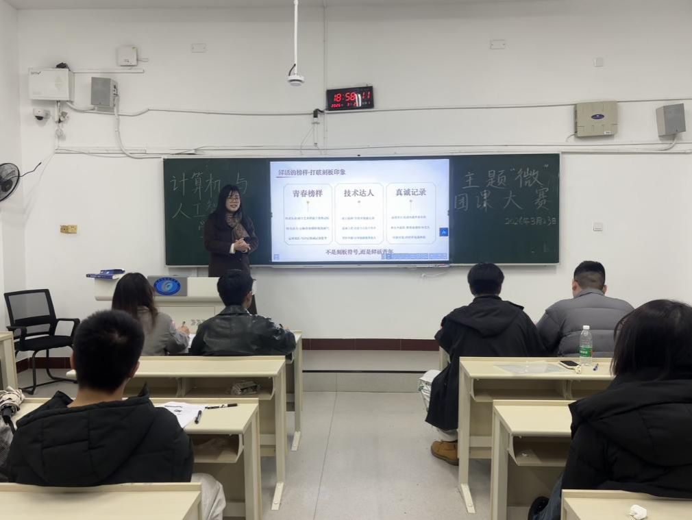 比赛中,选手们凭借精心的准备和真挚的演绎,呈现了一堂堂内容充实、形式生动的微团课。部分作品深入阐释雷锋精神的时代内涵,倡导在专业学习中弘扬奉献精神;部分作品聚焦国家发展大局,引导青年思考个人成长与时代使命的关联;还有作品从专业视角出发,探讨人工智能领域的发展趋势与青年学子的创新担当。现场氛围热烈,充分展现了计智学子扎实的理论功底、活跃的思维与积极向上的精神风貌。