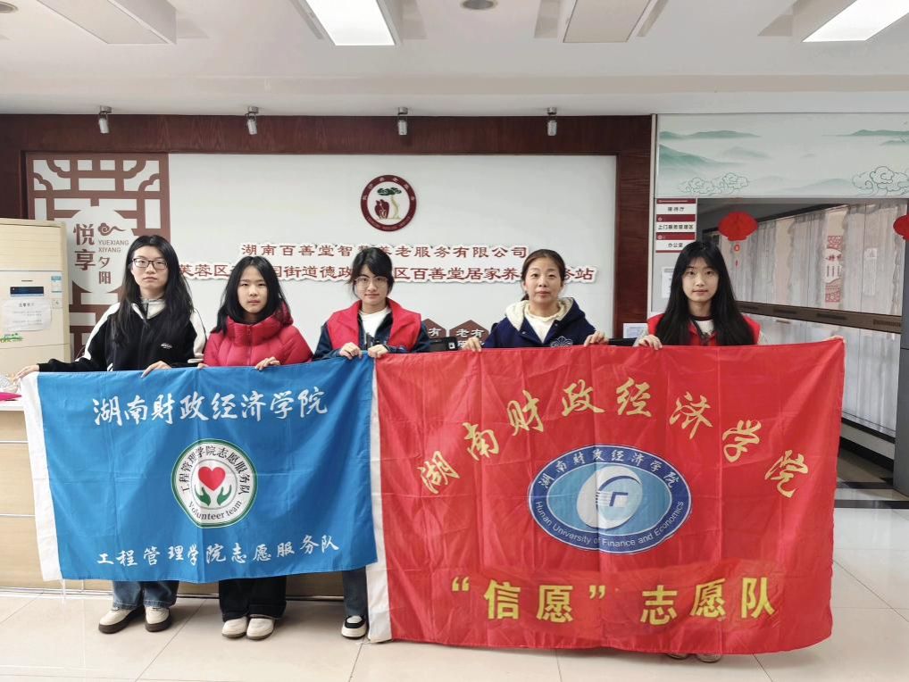 湖南财政经济学院计科院志愿者与百善堂敬老院老人暖心合影