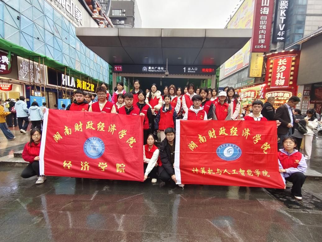 在黄兴广场,学院联合经济学院志愿者,共同承担起城市“窗口”的守护者与向导角色。他们在人流密集处定点值守,高效疏导;面对游客的各类咨询,始终面带微笑,提供清晰的景点指引与交通导乘。他们不仅维持着公共空间的井然秩序,更以热情周到的服务,成为展现城市文明形象的青春名片。